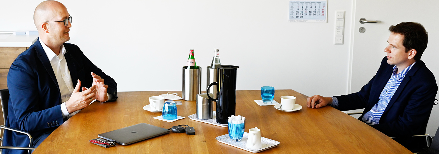 Interessiert erfuhr Dr. Plum von Martin Alders, dass das Unternehmen mit aktuell 25 Mitarbeitenden so gut wie keine Probleme hat, geeigneten Nachwuchs zu finden. „Das liegt aber auch daran, dass wir offensiv um Talente werben, eine Mitarbeiterkultur pflegen und Themen wie Recruiting und Employer Branding bei uns Chefsache sind“, so Martin Alders. Auch hier waren sich der Politiker und der Unternehmer einig, dass der Wert der beruflichen Bildung mehr herausgestellt werden sollte und, so Dr. Plum, „nicht jeder studieren muss“.