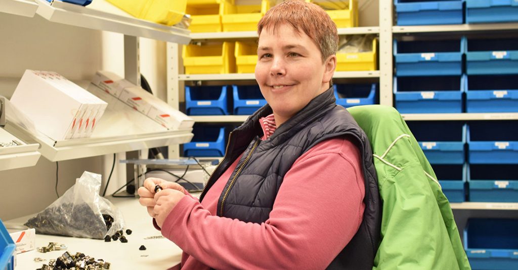Zwei Tage bei ALDERS, drei Tage im HPZ Kempen – Astrid Wrede hat ein ambitioniertes Wochenprogramm an zwei Arbeitsplätzen. Mit ihrem Handicap leistet die 44-Jährige sowohl im Büro als auch in der Produktion zuverlässige Arbeit. Bei ALDERS kann die Kempenerin berufspraktische Fähigkeiten ebenso wie soziale Kompetenzen erweitern. „Eine Win-Win-Situation“, sagt Geschäftsführer Martin Alders.