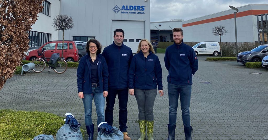 Drei volle Müllsäcke – das ist die Bilanz des diesjährigen Frühjahrsputzes rund um das Firmengebäude von ALDERS electronic an der Kempener Arnoldstraße 19. Vier Mitarbeiter des Unternehmens waren in Gummistiefeln einen Vormittag unterwegs, um den Zivilisationsunrat auf den Straßen, Feldern und Grünstreifen aufzulesen. Die ALDERS-Umweltinitiative ist einen Tag vor dem Frühjahrsputz der Stadt.