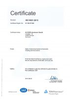 Certification: Re-certification according to DIN ISO 9001:2008 and certification according to EN 9120