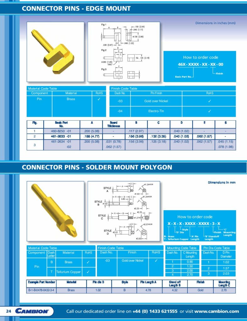 - Connection pins / contact pins with 1.02mm / 1.57mm / 2.03mm diameter