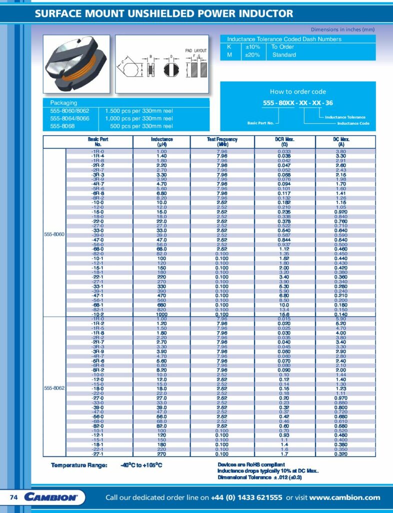 Cambion Inductive Products Surface Mount Unshielded Power Inductor