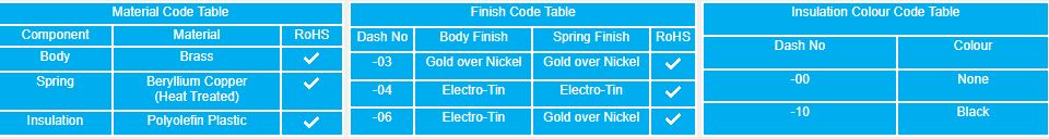 • Finishes available in Gold Plated, Tin Plated, Gold Plated Inside, and Tin Plated Outside