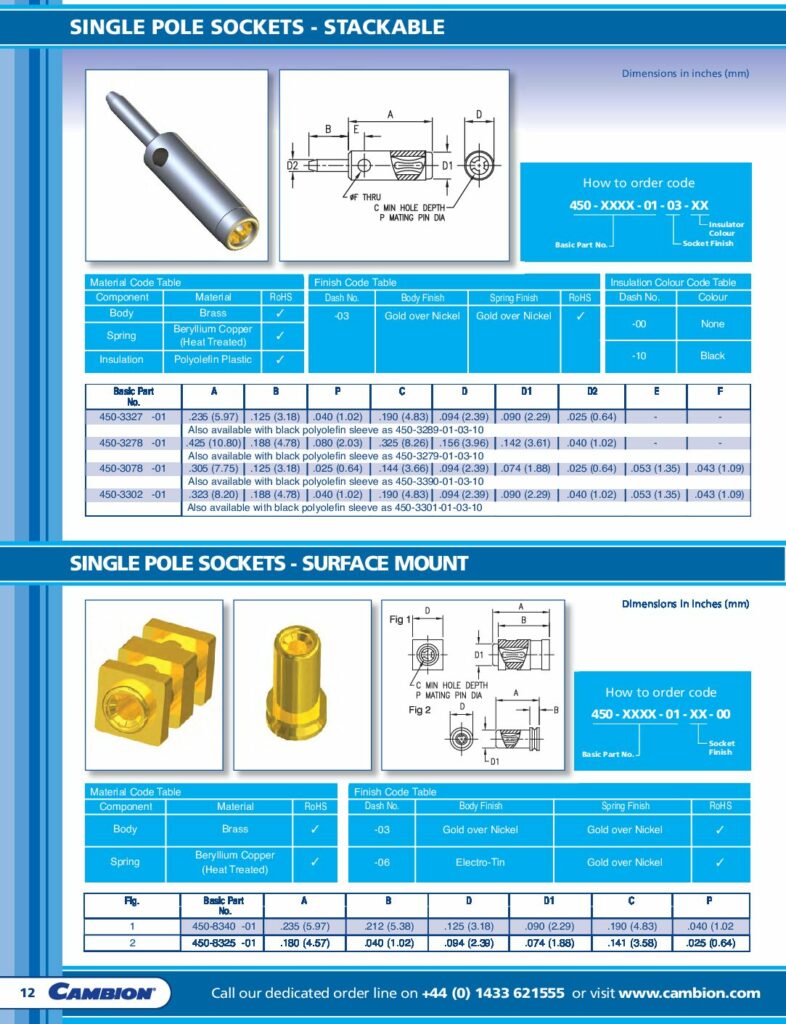 - For contact pins with a diameter of 0.64mm to 2.03mm