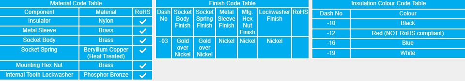 - RoHS compliant except Insulation-12 ( Red PTFE )
