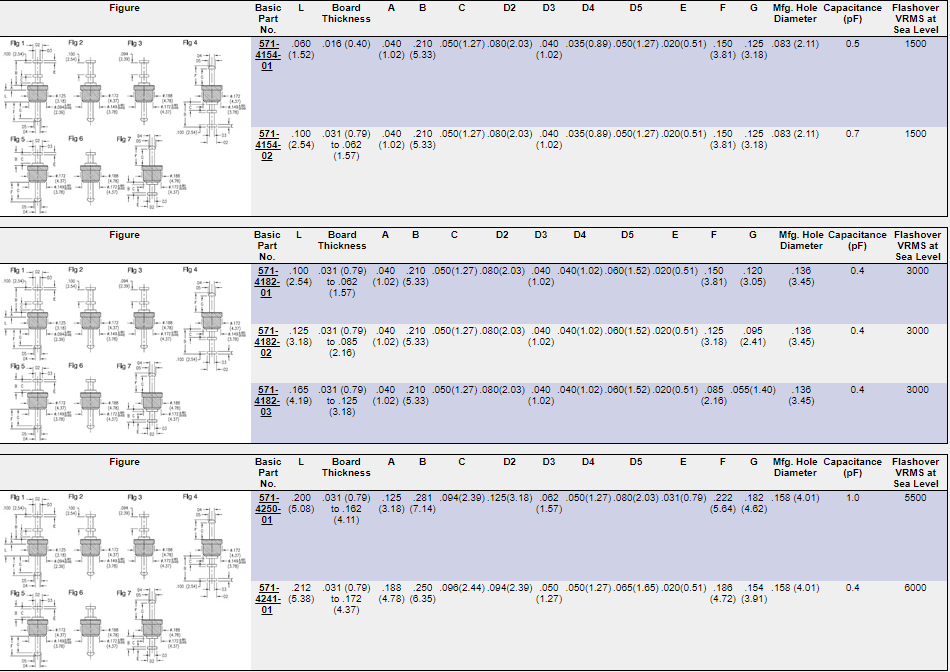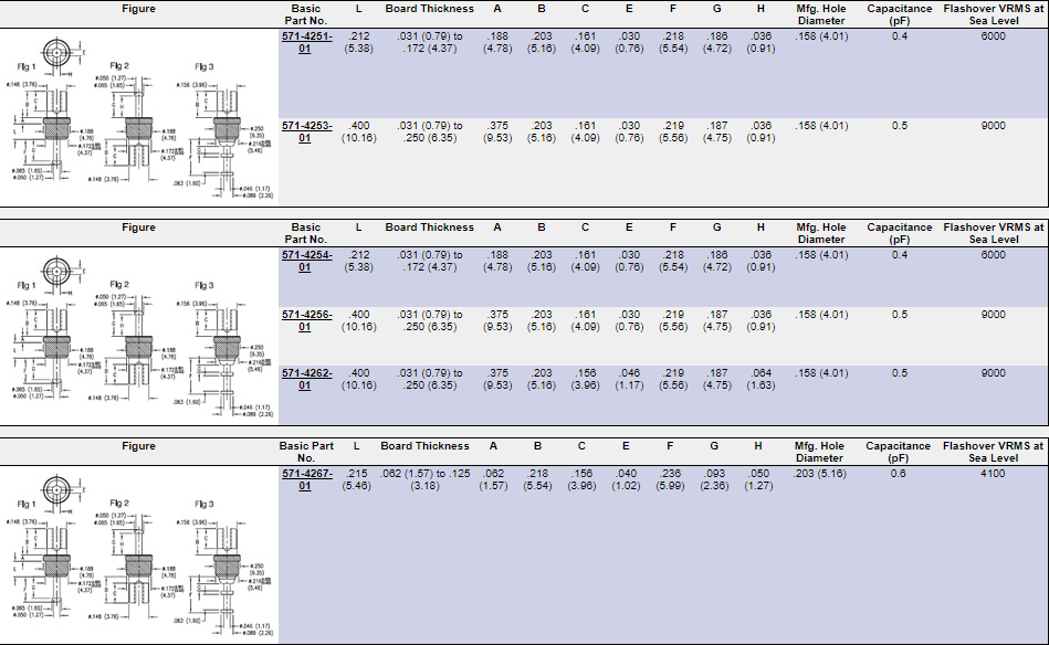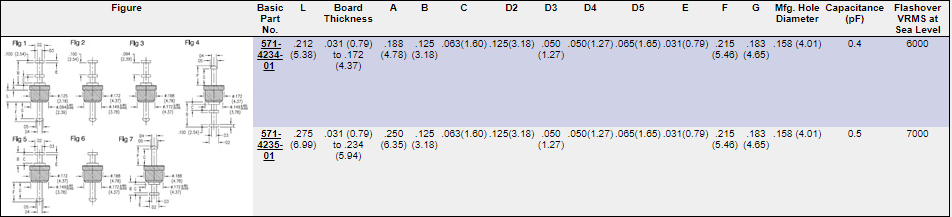 - Capacitance 0.4pF – 0.45pF – 0.5pF – 0.7pF and 1.0pF