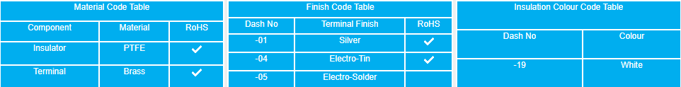 - Insulated solder terminals made of PTFE