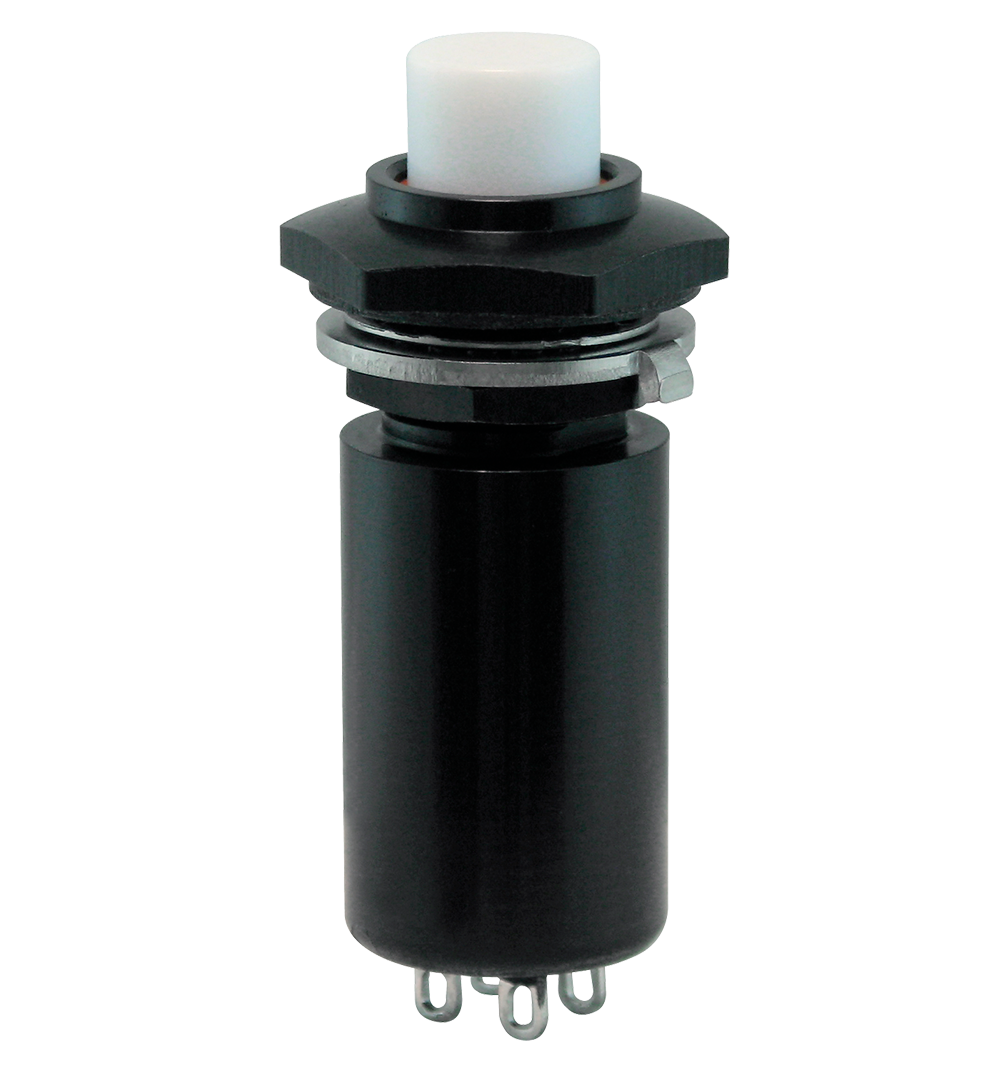 The PE2 with solder termination is qualified under MIL-PRF-8805/99. The PE2 is a rugged sealed switch; capable of withstanding high shock and vibration and is ideal for harsh environments. A variety of button colors and simple panel mounting options are available. The PE2 is splash-proof with panel sealing in accordance with MIL-PRF-8805, Symbol 6.