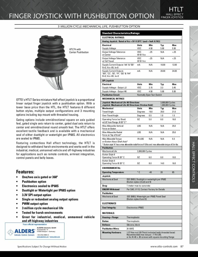 OTTO Controls 2-axis finger joystick HTLT4 hall effect