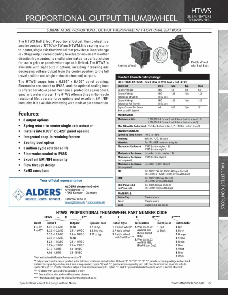 OTTO Controls thumbwheel HTWS series hall effect subminiature