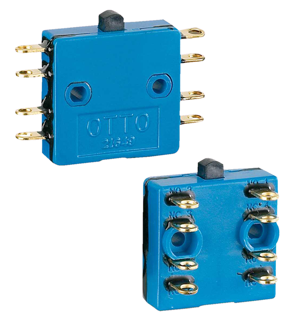 Two switches in one case! The B5-7 series basic switches are miniature in size but feature up to 10 amps switching capability of 100,000 cycles. The molded housing is rugged and structurally stable. The terminals are sealed against solder flux entering the switch and are bright acid tin plate brass for excellent solderability. B5-71 has end terminals; B5-72 has front terminals.