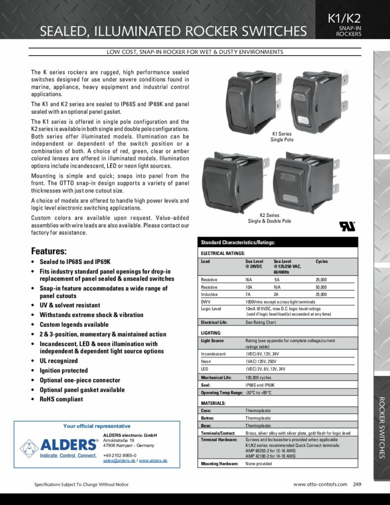OTTO Controls rocker switch K2 series snap-in