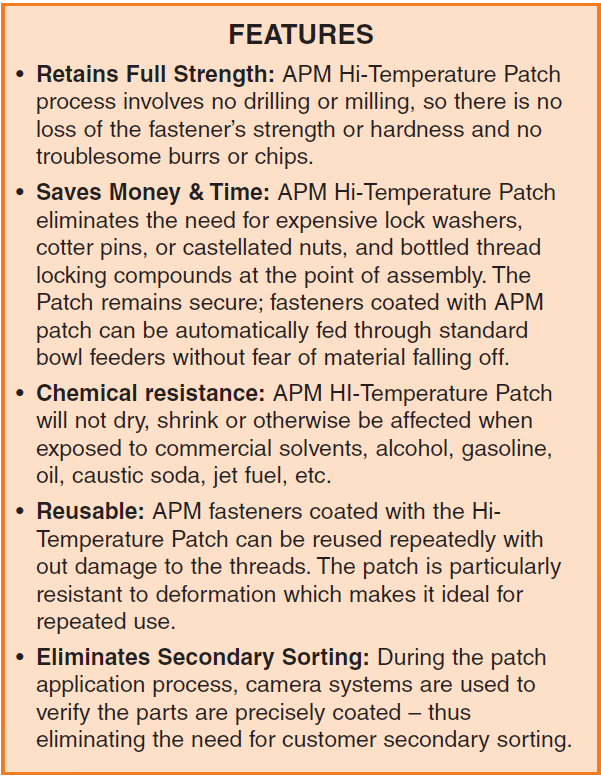APM Hexseals HIgh-Temperature Patch for Locking and Sealing Features