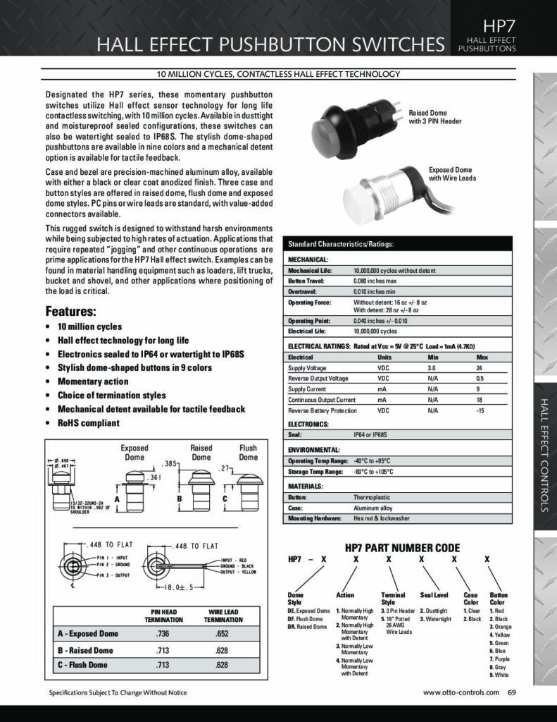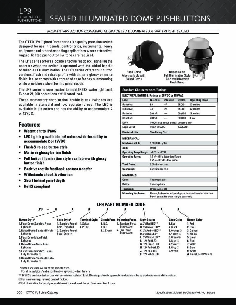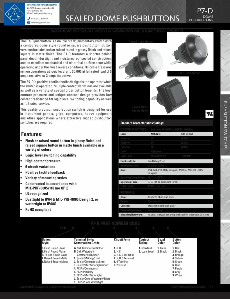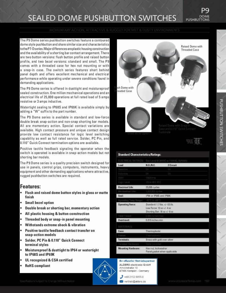 OTTO Controls bouton poussoir série P8