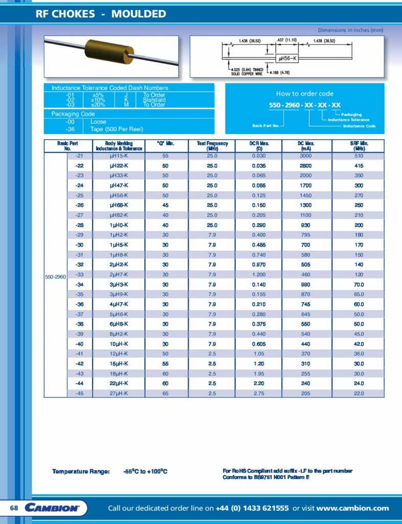 Cambion Inductive Products RF Chokes – Moulded