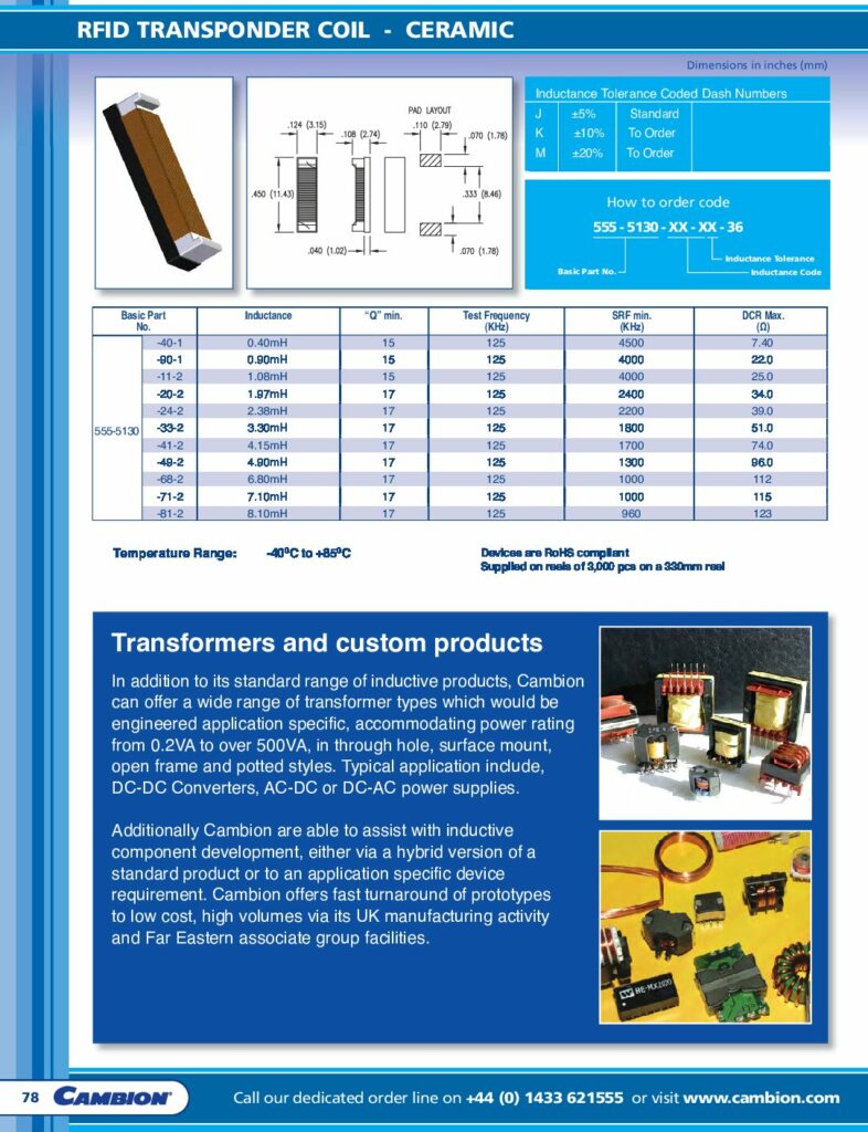 Cambion Inductive Products RFID Transponder Coil – Ceramic