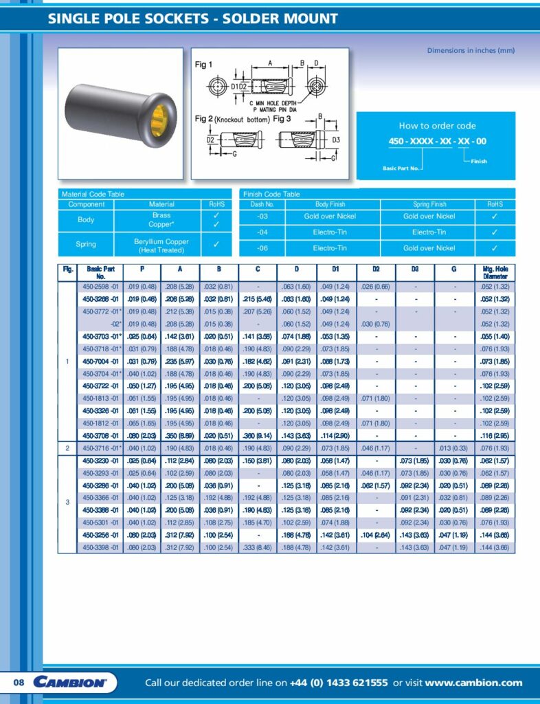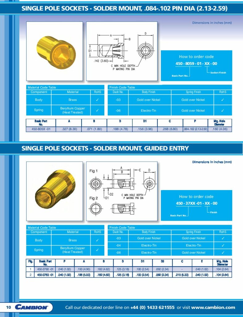 | Hersteller | Cambion Electronics Limited | Kategorien | Leiterplattenkomponenten, Single Pole Sockets (Einpolige Buchsen / Kontaktbuchsen) |