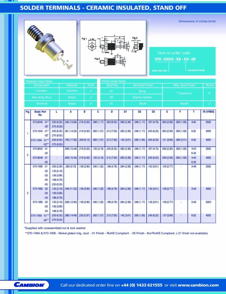| Hersteller | Cambion Electronics Limited | Kategorien | Leiterplattenkomponenten, Solder Terminals (Lötstützpunkte) |