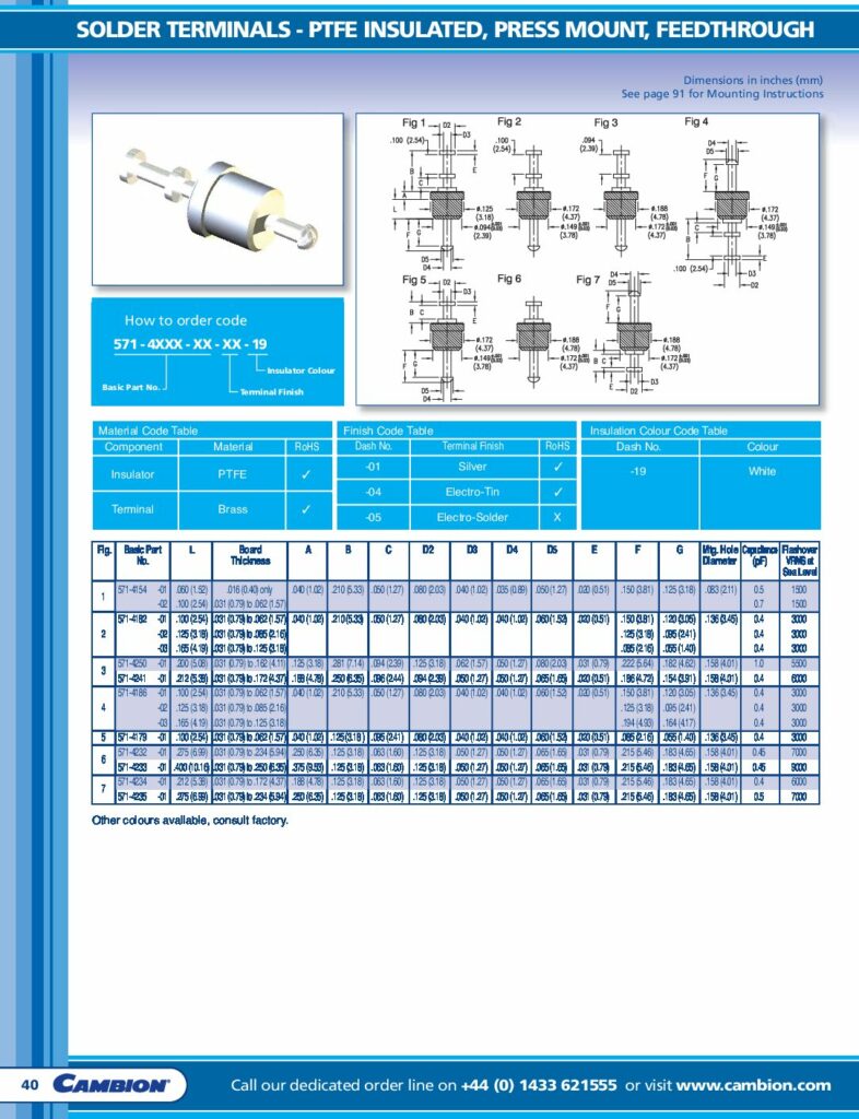 Cambion Lötstützpunkt PTFE Insulated – Press Mount & Feedthrough