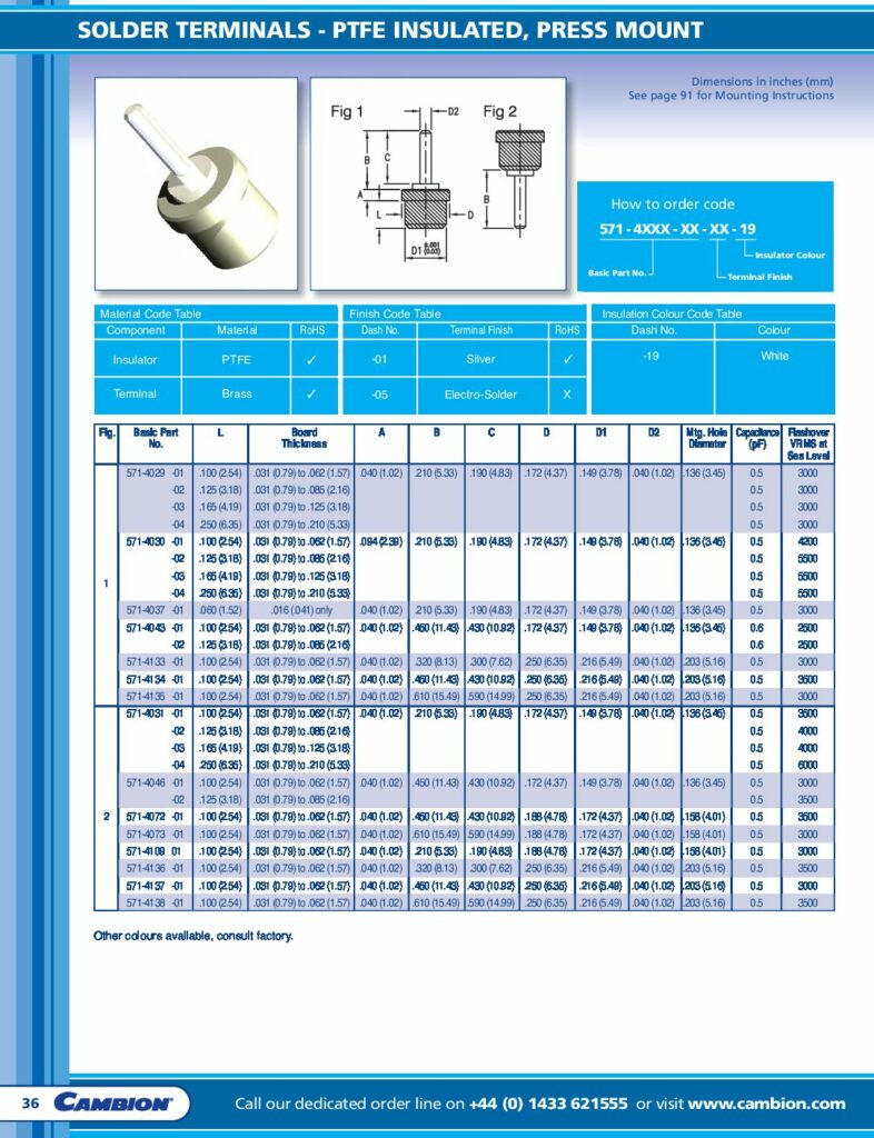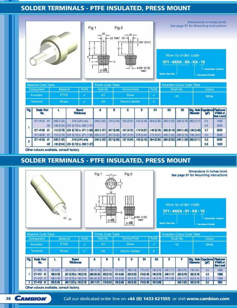 Cambion Lötstützpunkt PTFE Insulated – Press Mount & Feedthrough