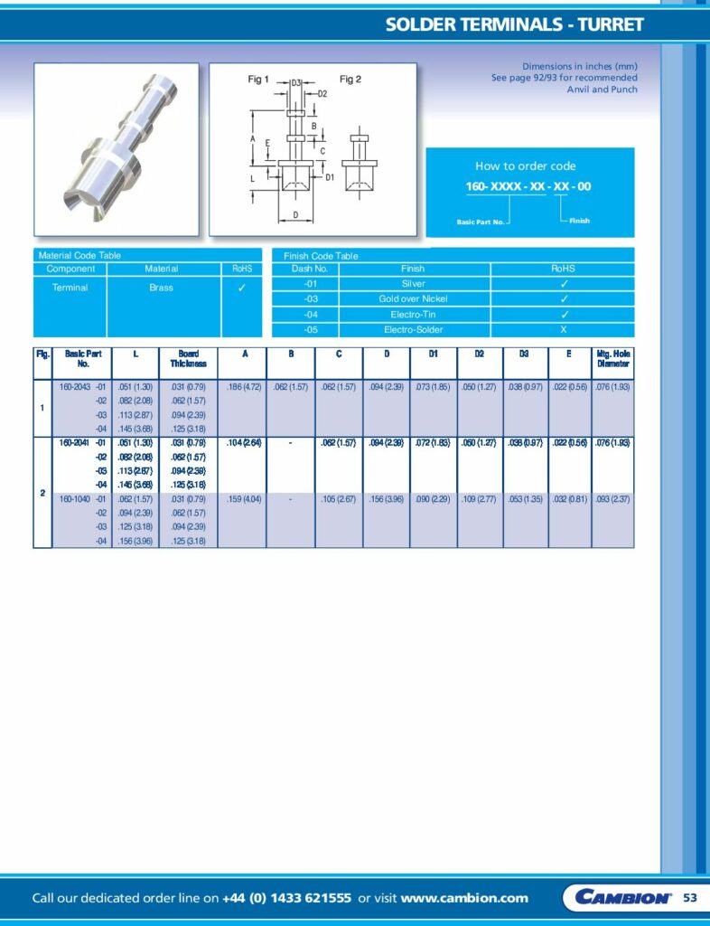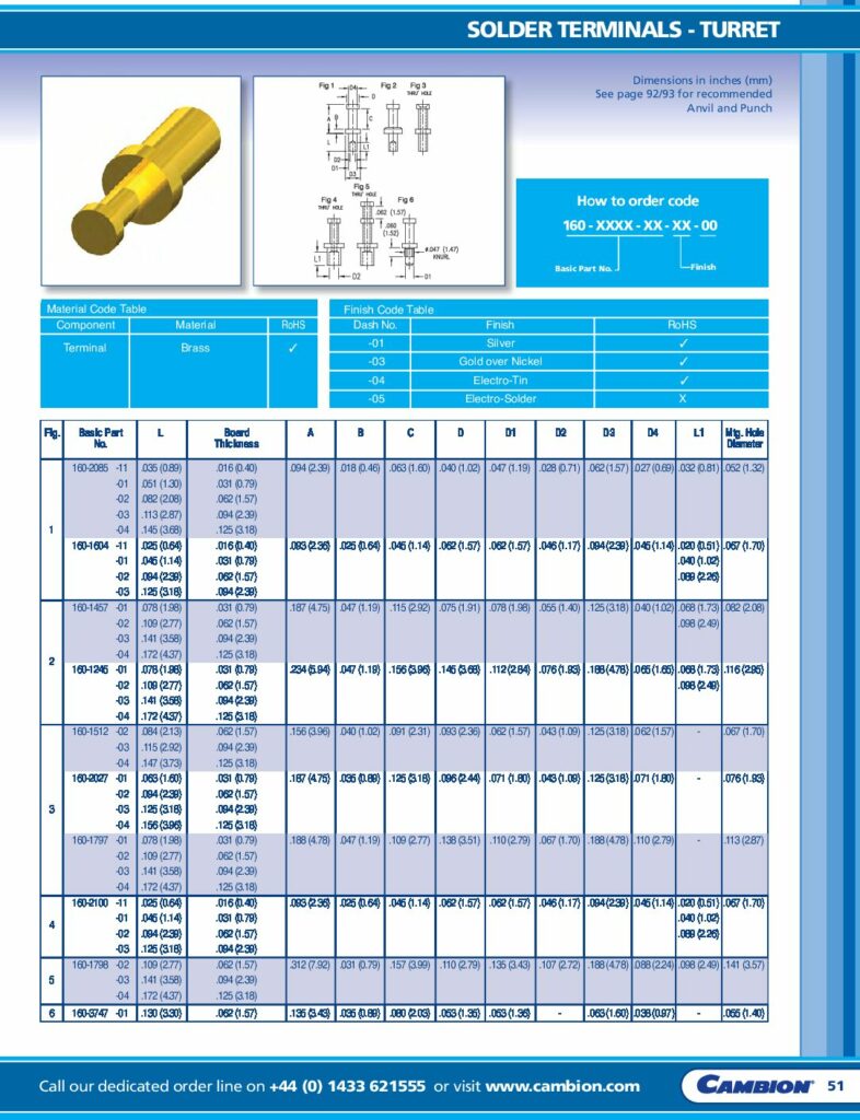 | Hersteller | Cambion Electronics Limited | Kategorien | Leiterplattenkomponenten, Solder Terminals (Lötstützpunkte) |