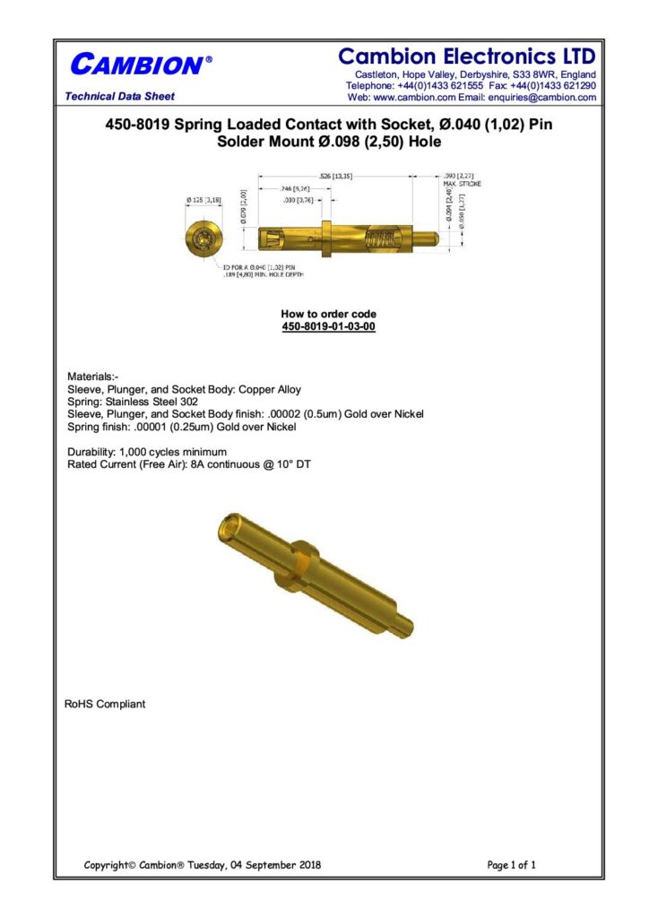 | Hersteller | Cambion Electronics Limited | Kategorien | Leiterplattenkomponenten, Spring loaded Contacts (Federgestützte Kontakte) |