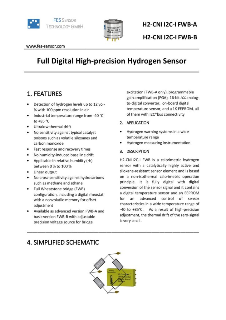 FES Sensor Technology Gassensoren digitaler hochpräziser Hydrogen-Sensor H2 CNI I2C-I FWB A