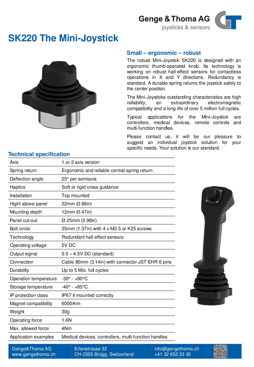 Hebel- oder Daumenrad Design Beim Hebeldesign nur sehr geringe Einbautiefe Spannungsausgang zwischen 0,5V und 4,5V Redundante Ausführungen möglich IP68 Entwickelt für Griff-, Armlehnen- und Panelmontage[...]