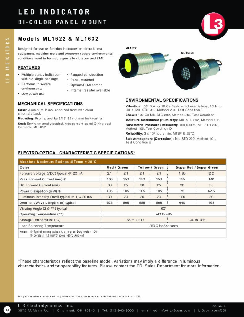 L3Harris Modell ML1622 & ML1632 LED Indikator – Panel Mount – BI-Color