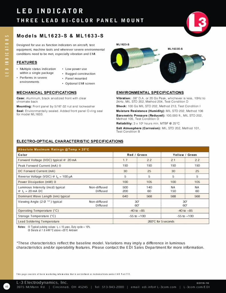 L3Harris Modell ML1623-S & ML1633-S LED Indikator – Panel Mount – BI-Color