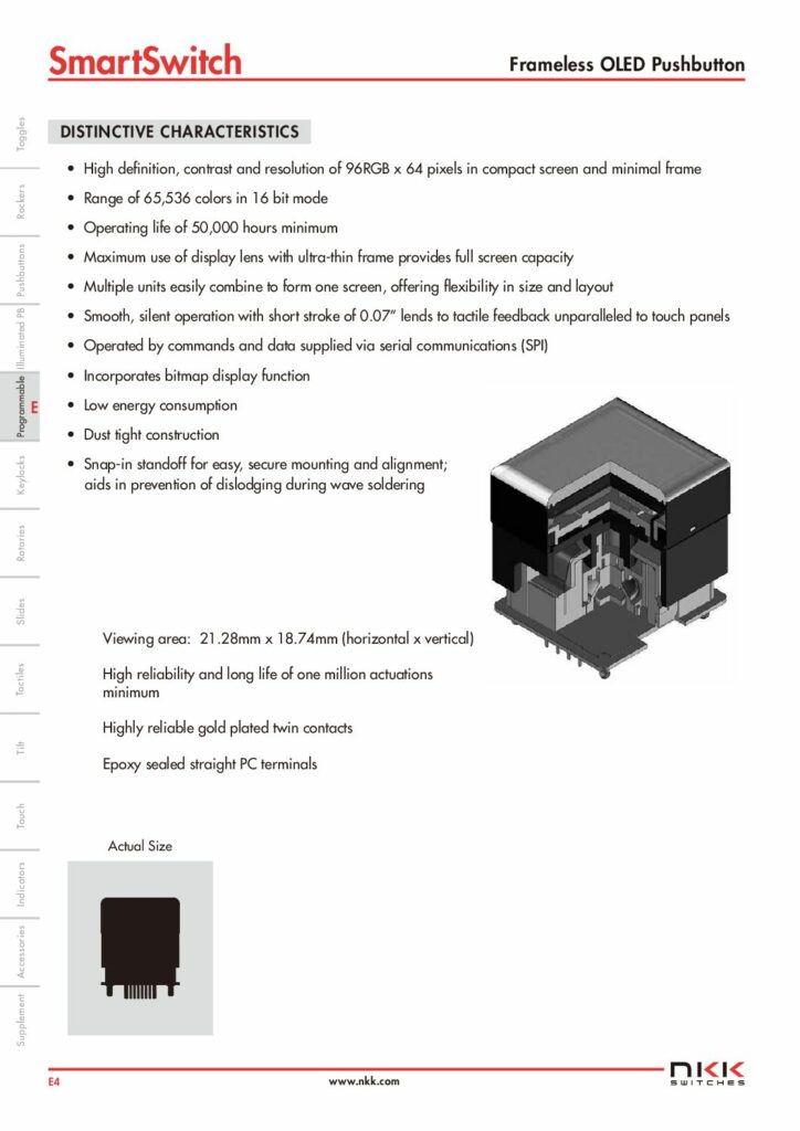 NKK Switches Displaytaster 96×64 OLED Pushbutton Frameless