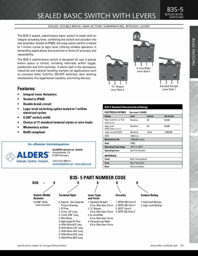| Hersteller | OTTO Controls | Kategorien | Druckschalter und -taster, Mikroschalter |