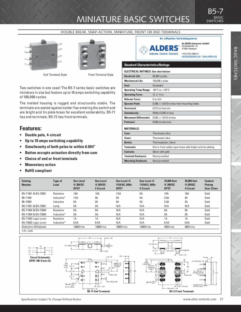 OTTO Controls Mikroschalter B5-7 Serie
